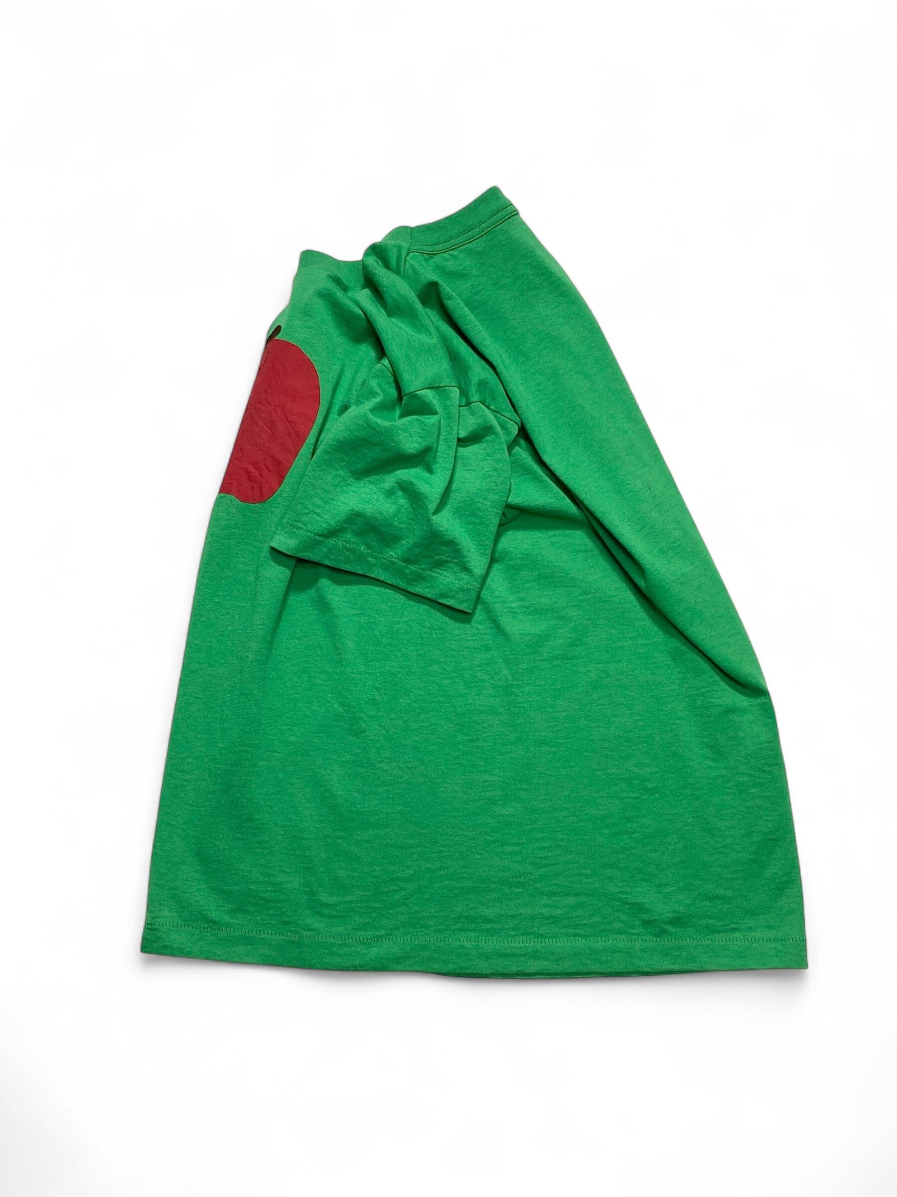 りんごのアップリケがかなりポップな印象なので、レザーパンツなどハードなアイテムと合わせたら面白そうです。