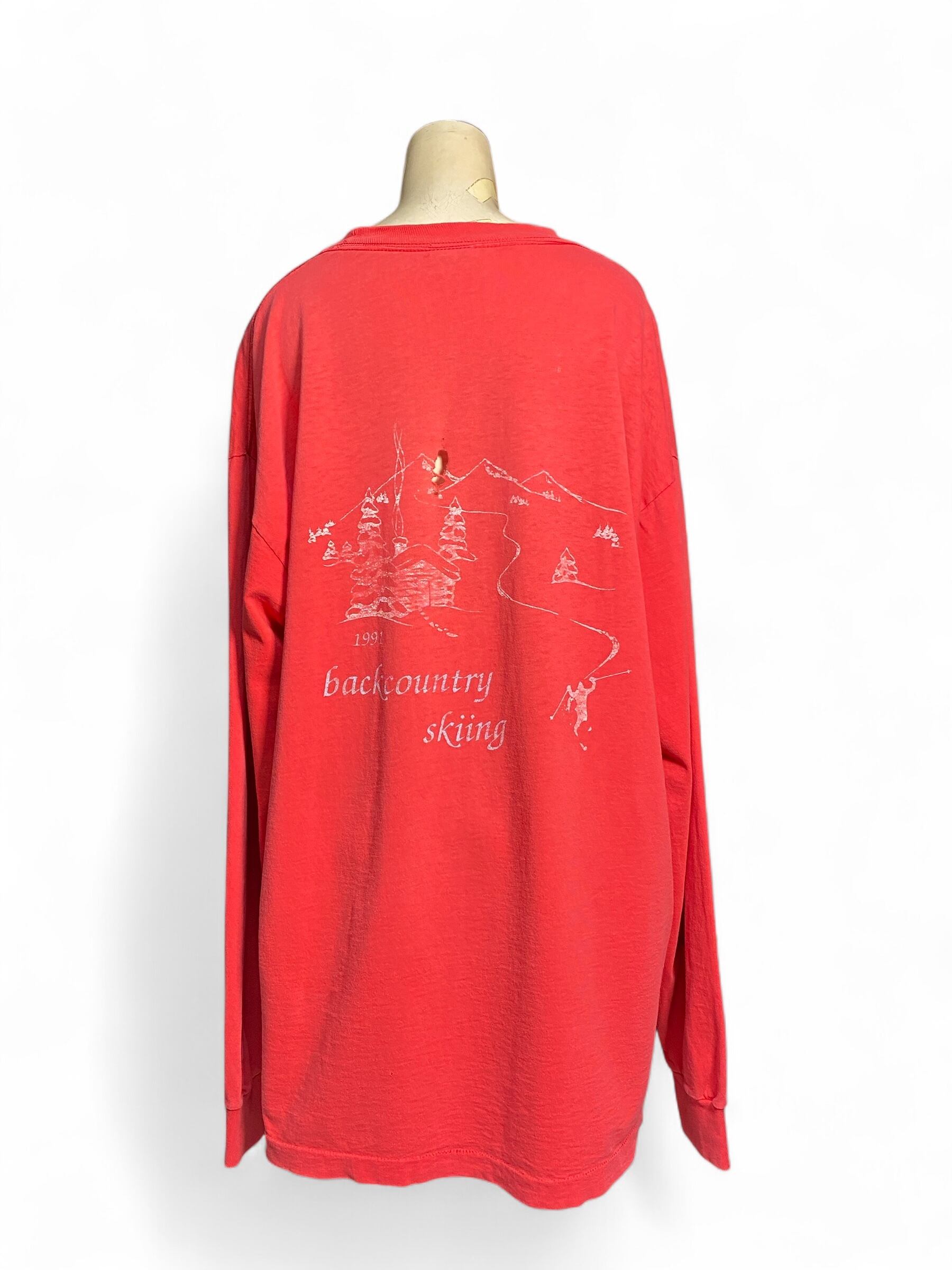 バックプリントは70年代のビンテージアウトドアTシャツにプリントされていそうなデザイン。