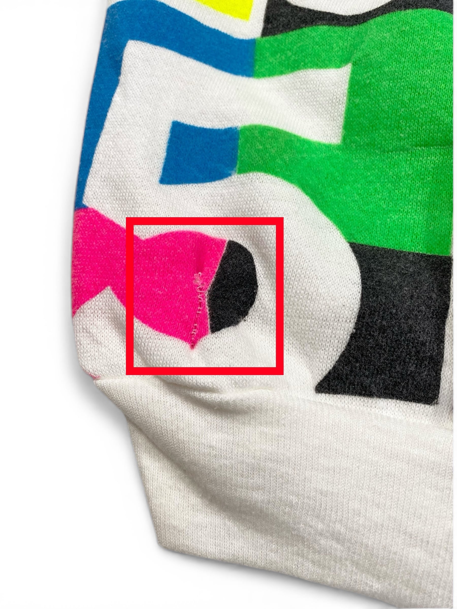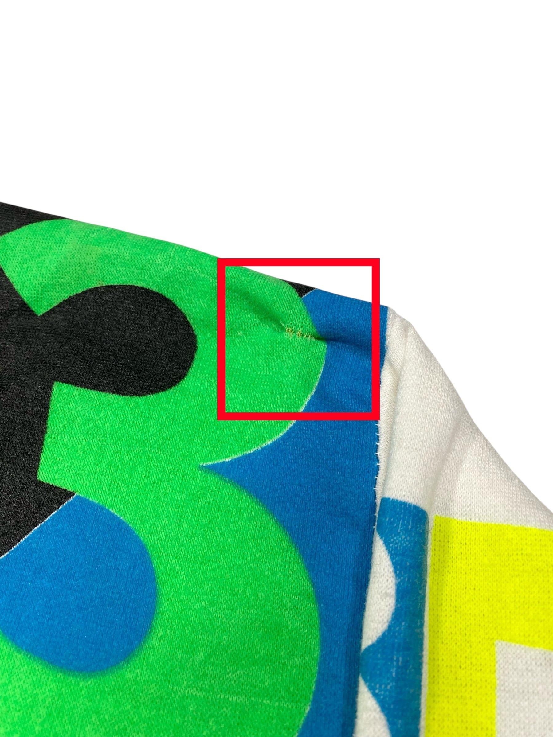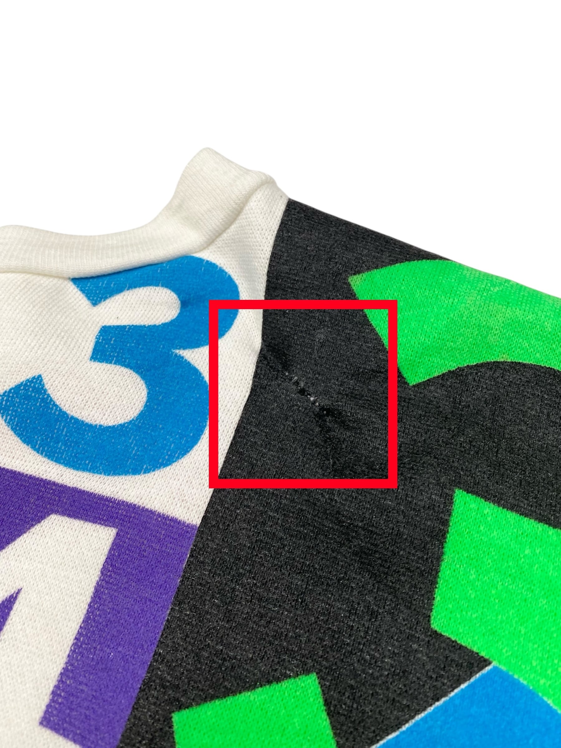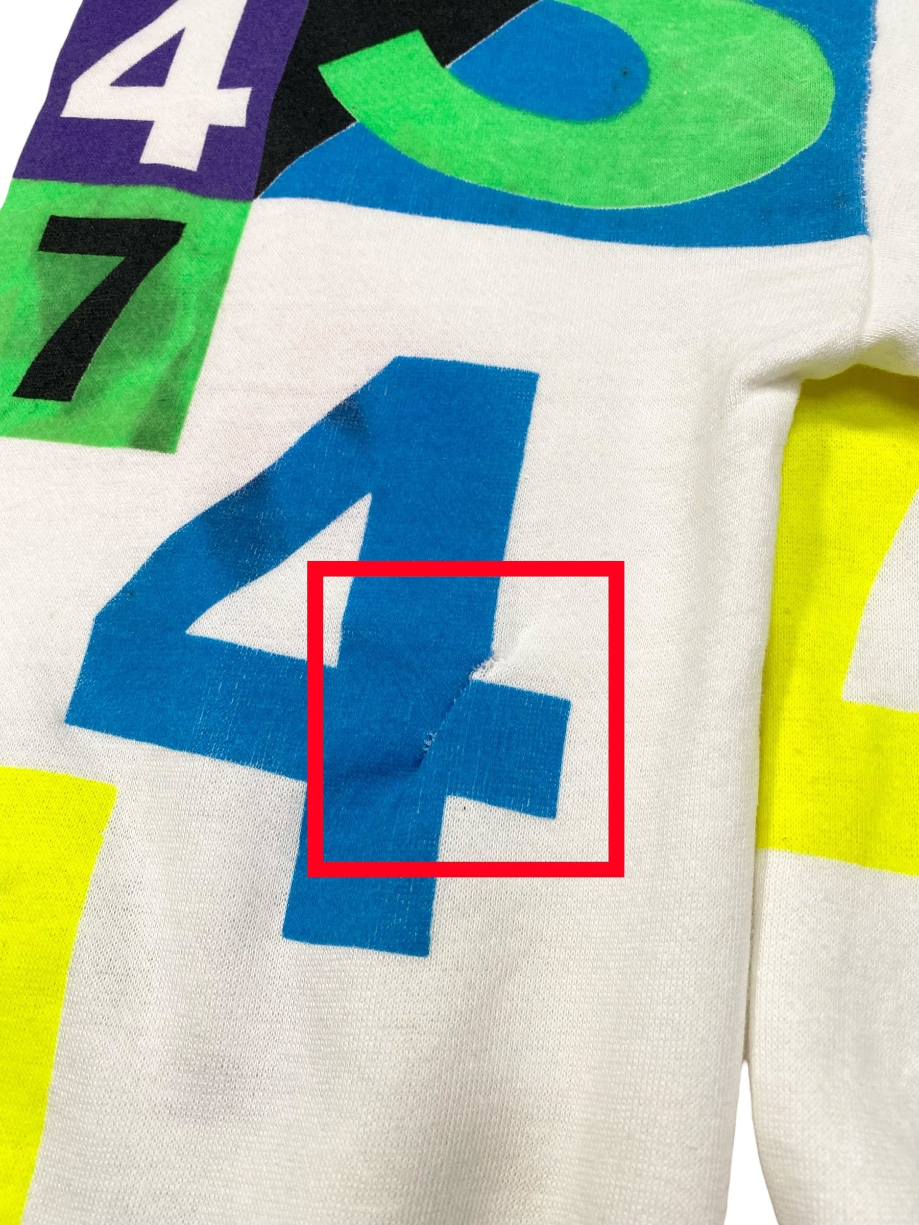 数字のプリント部分に5箇所程リペアがありす。その他に毛玉、汚れ等ございます。画像よりご確認ください。