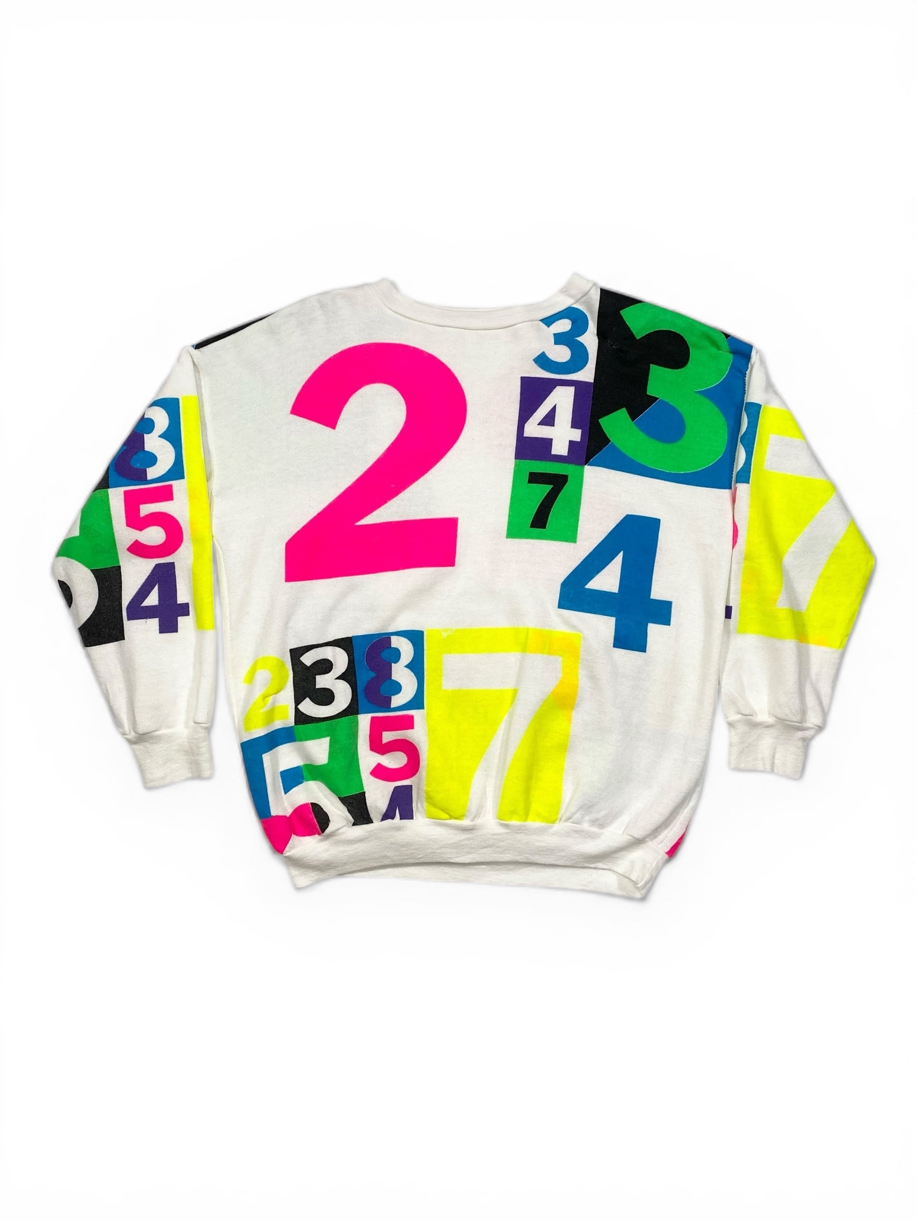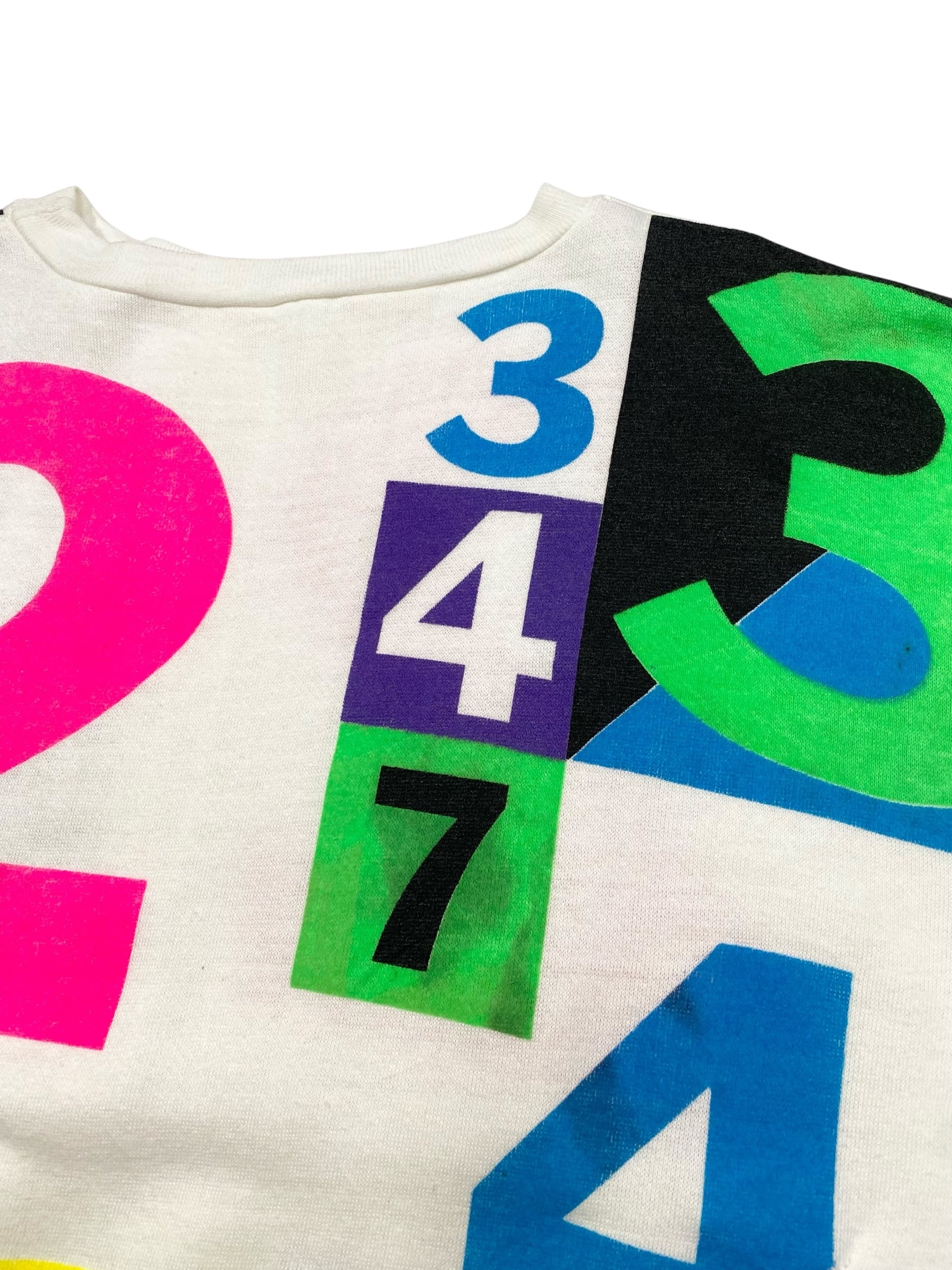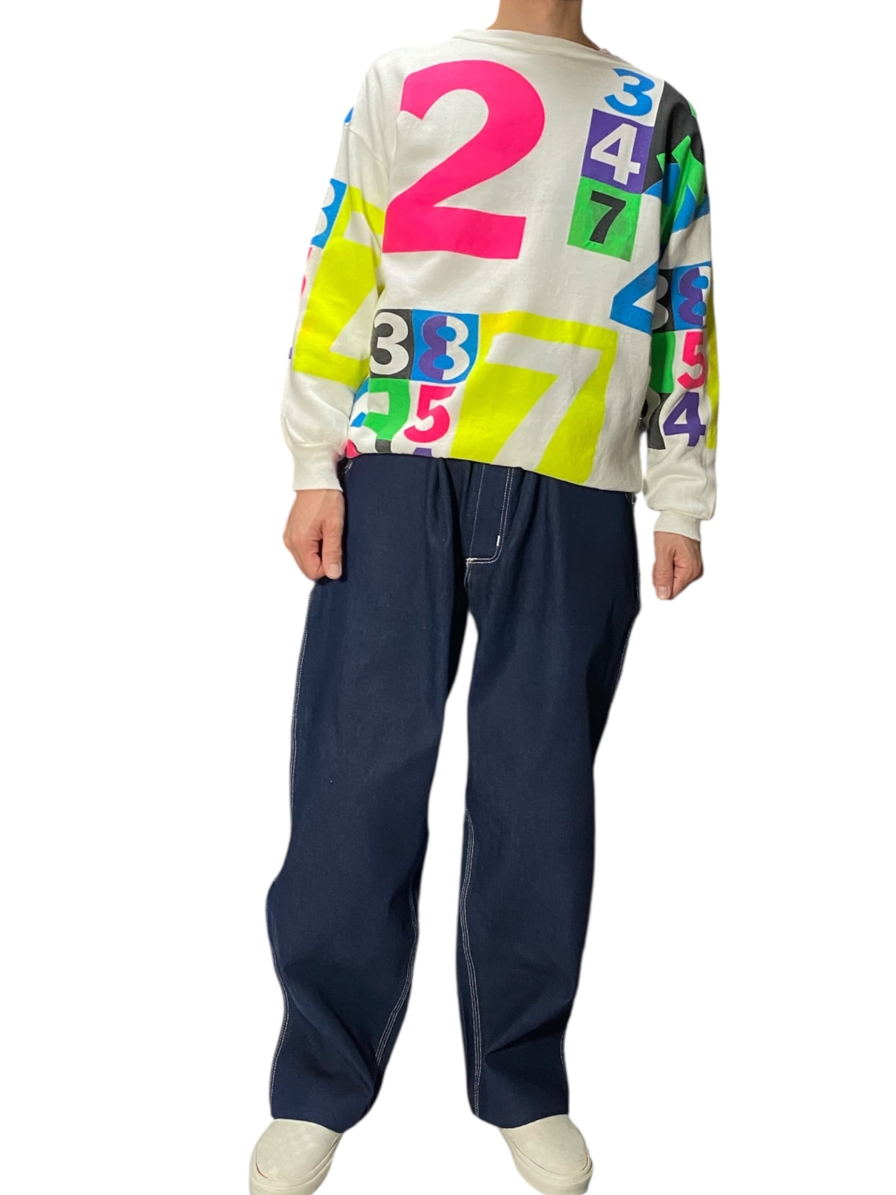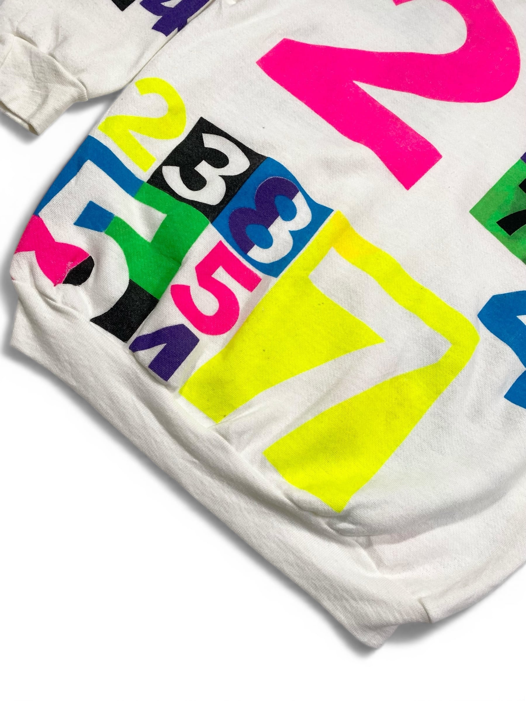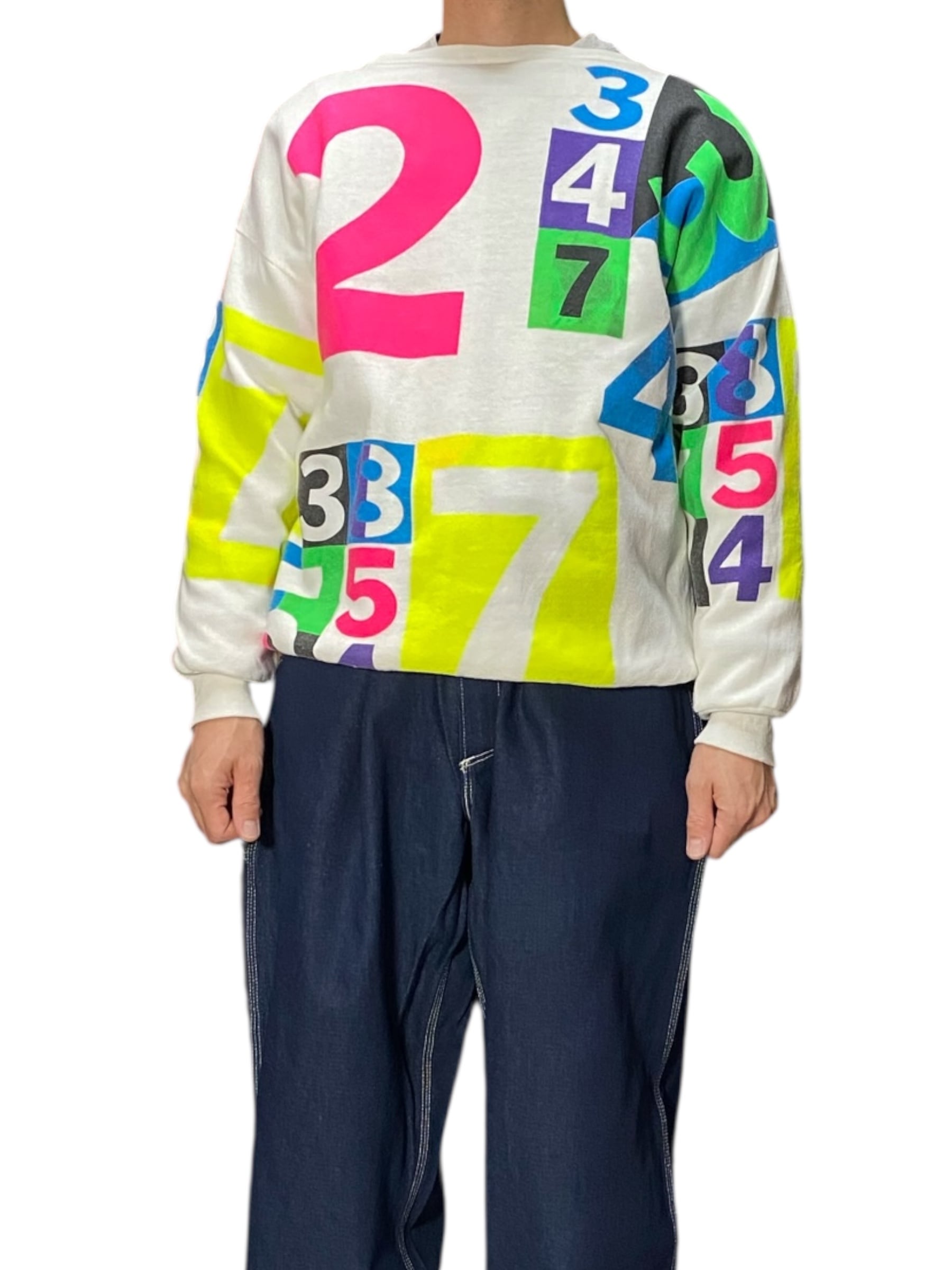 カラフラでポップな数字がプリントされたスウェット。少し古めのボディです。