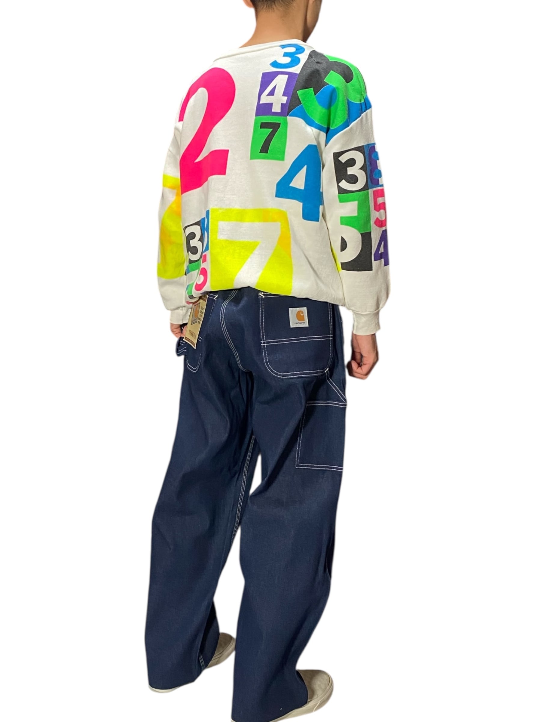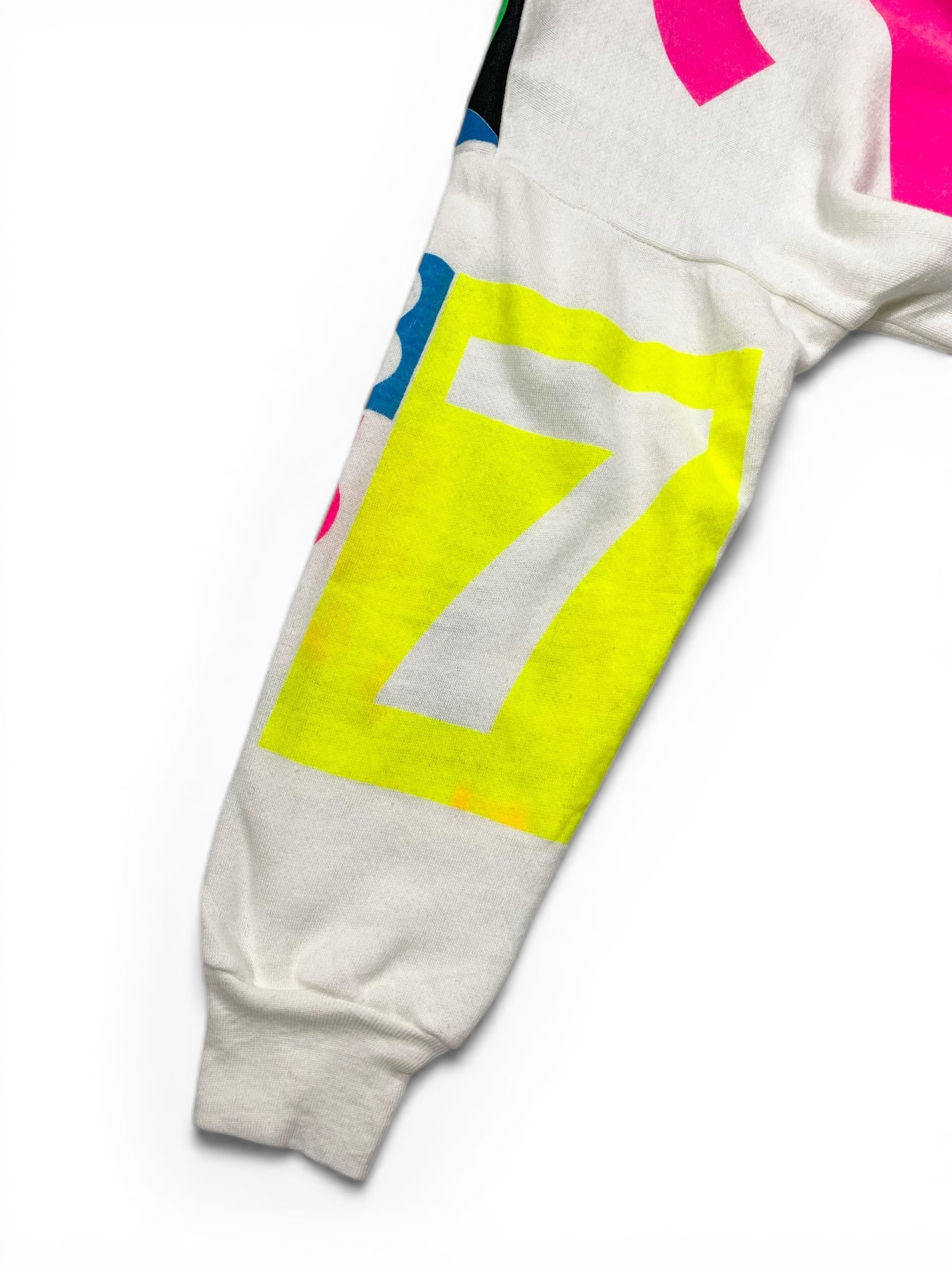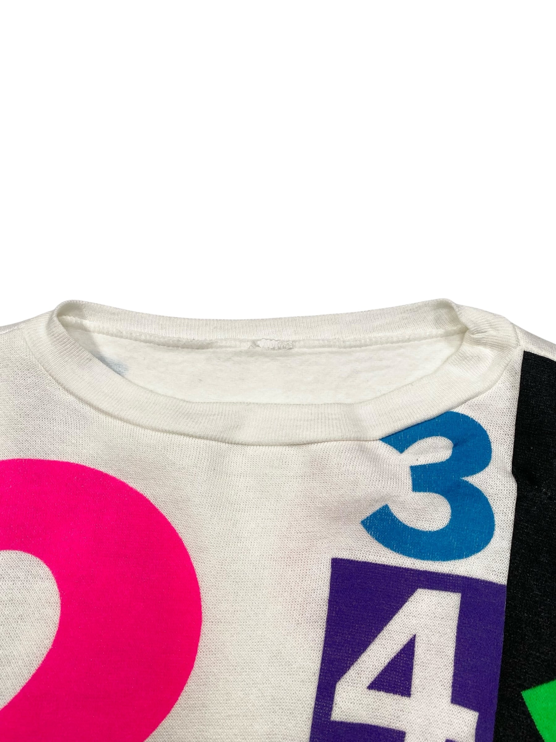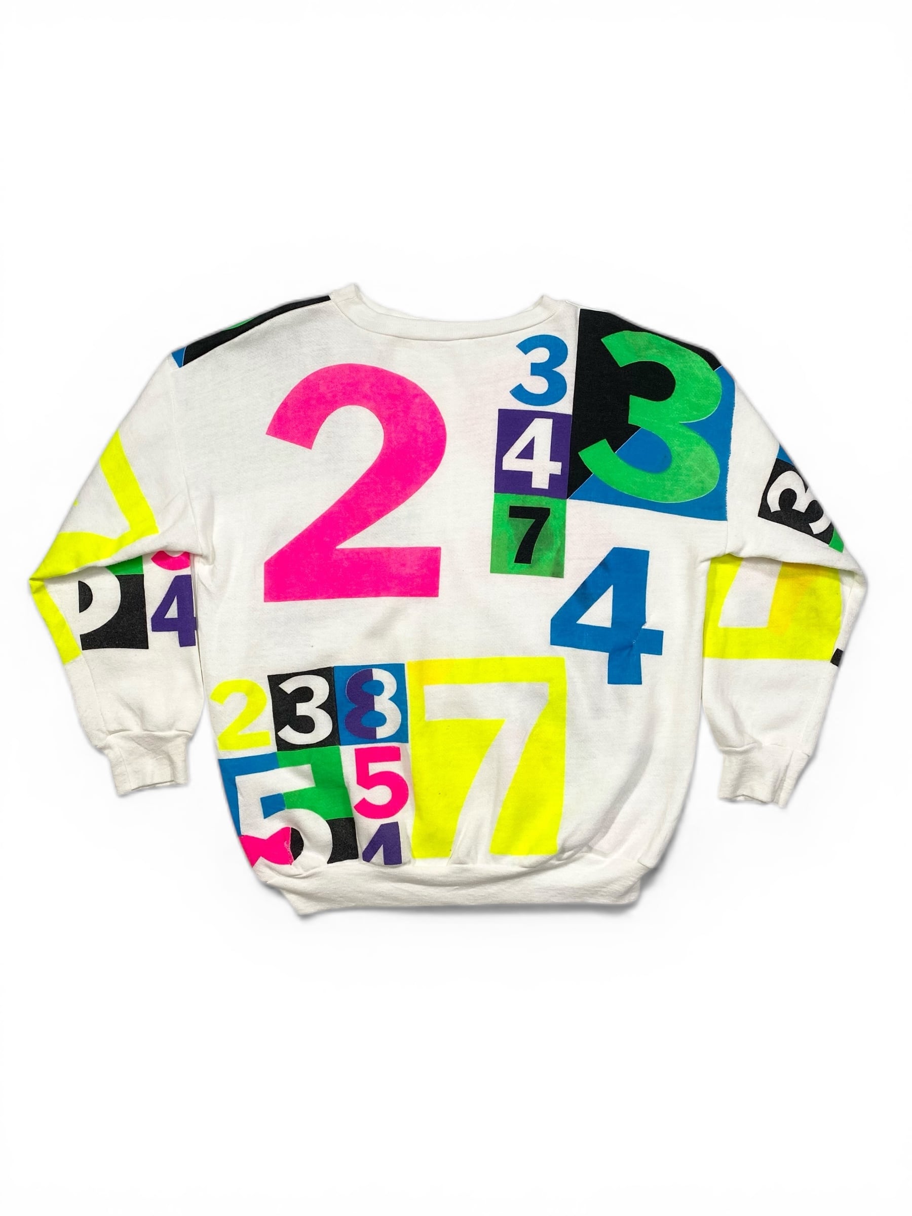 カラフラでポップな数字がプリントされたスウェット。少し古めのボディです。