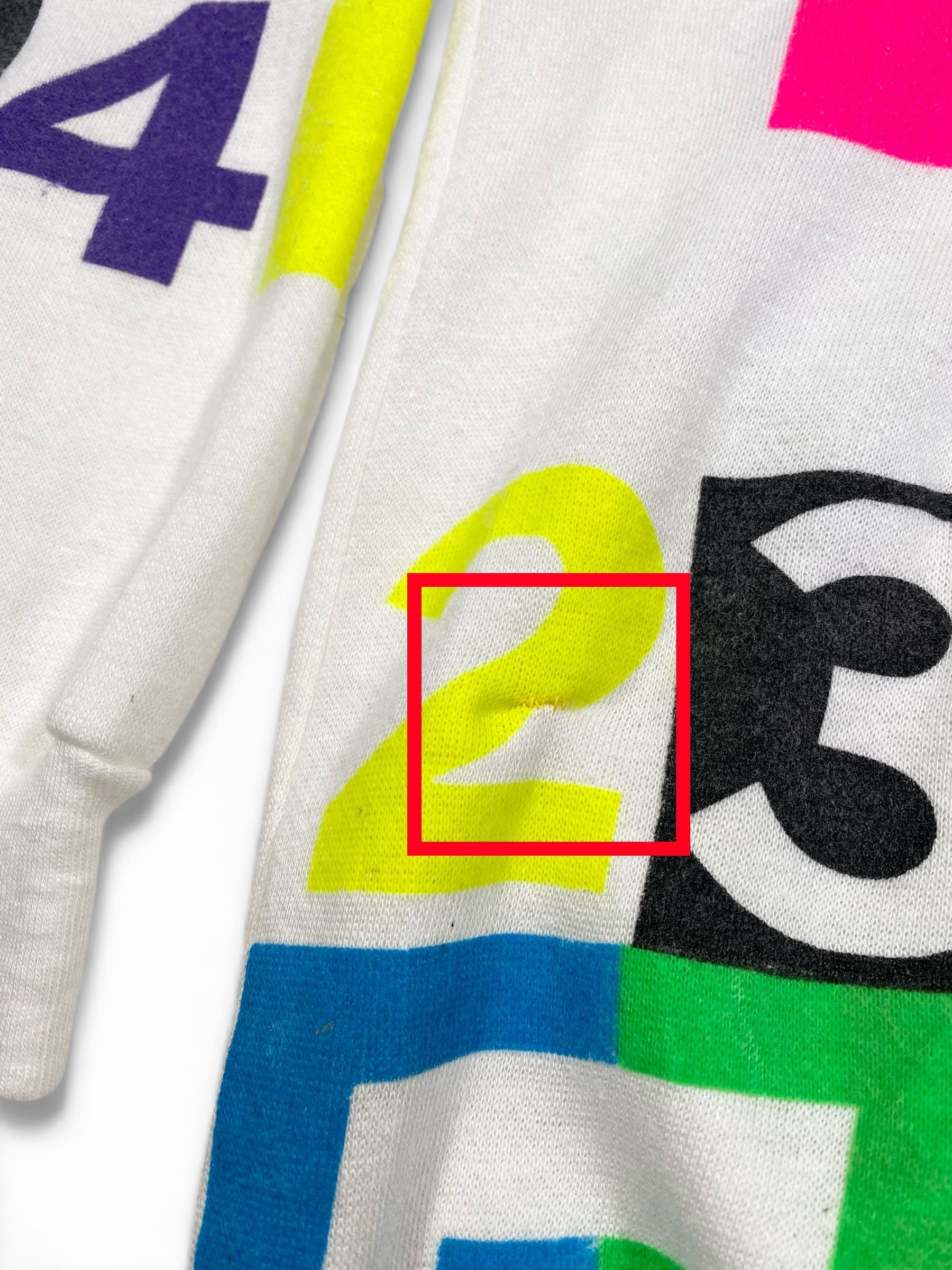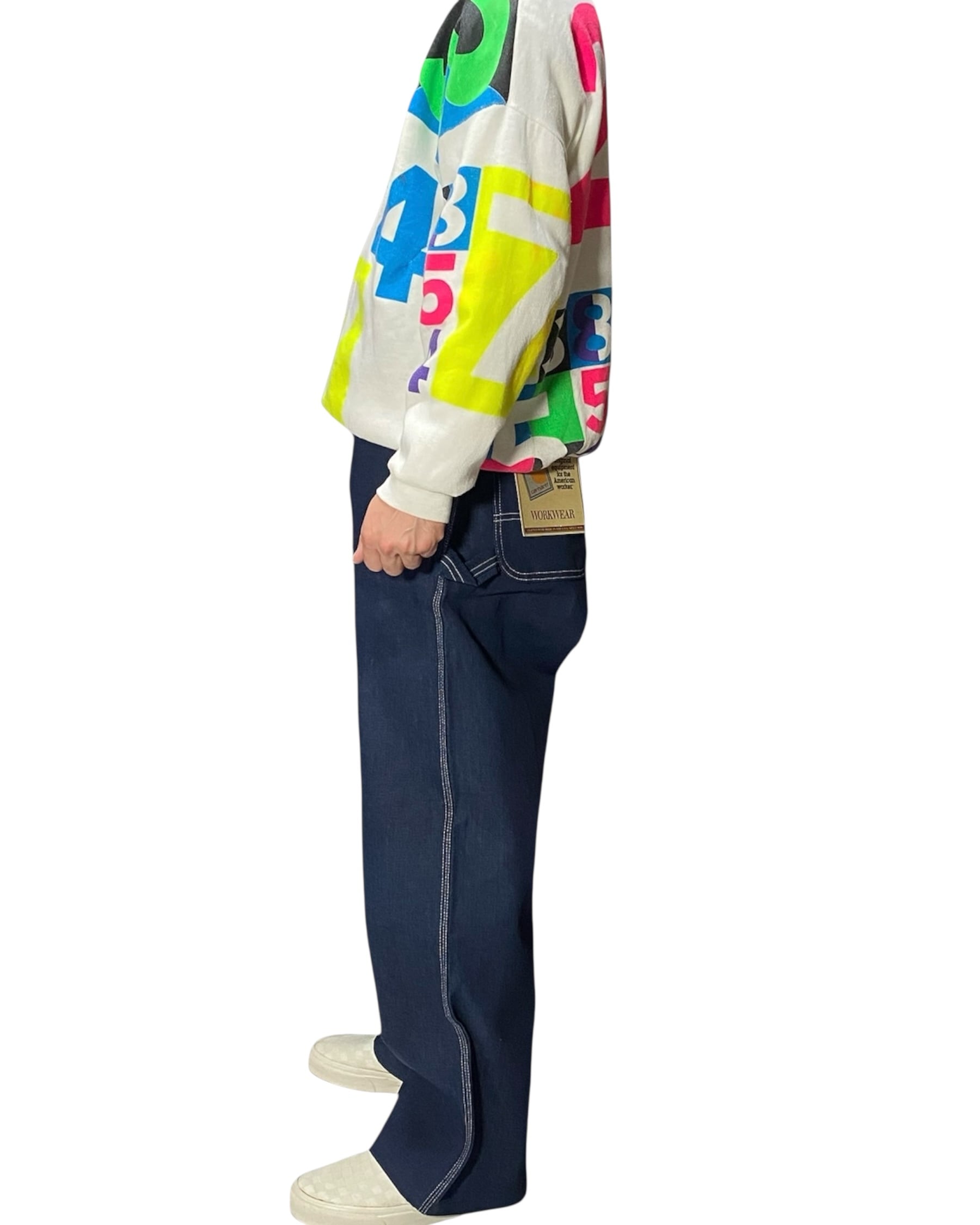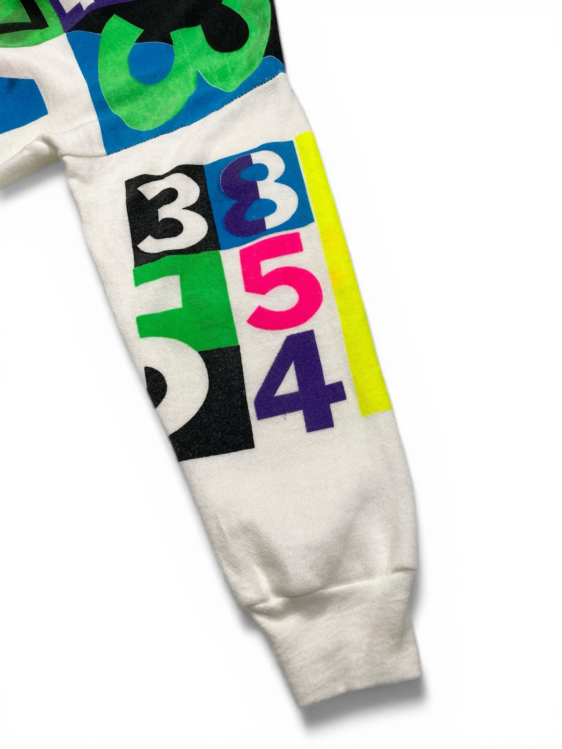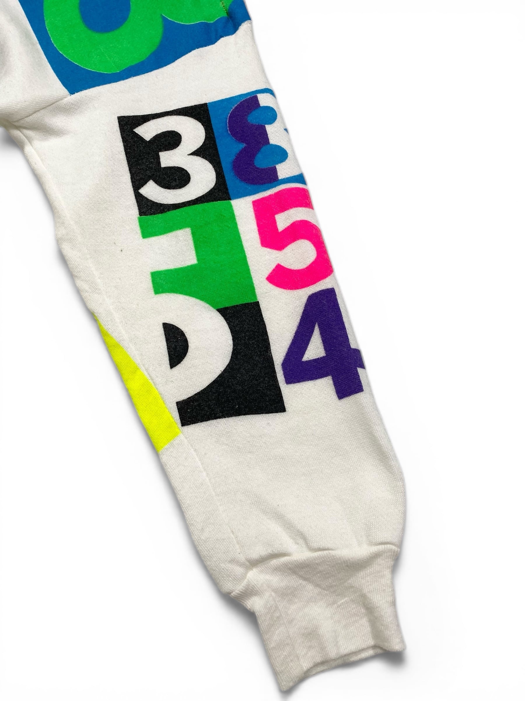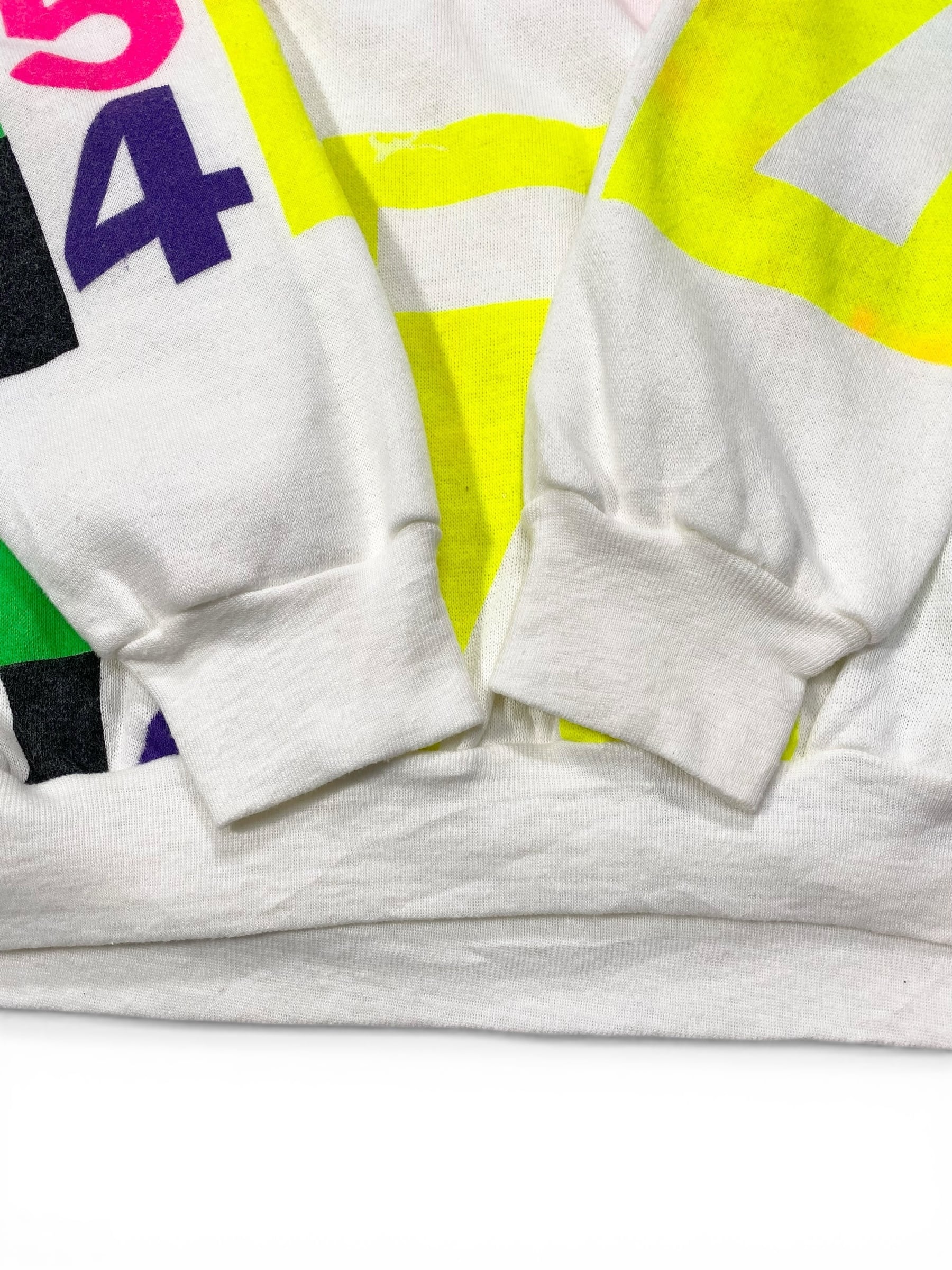 カラフラでポップな数字がプリントされたスウェット。少し古めのボディです。