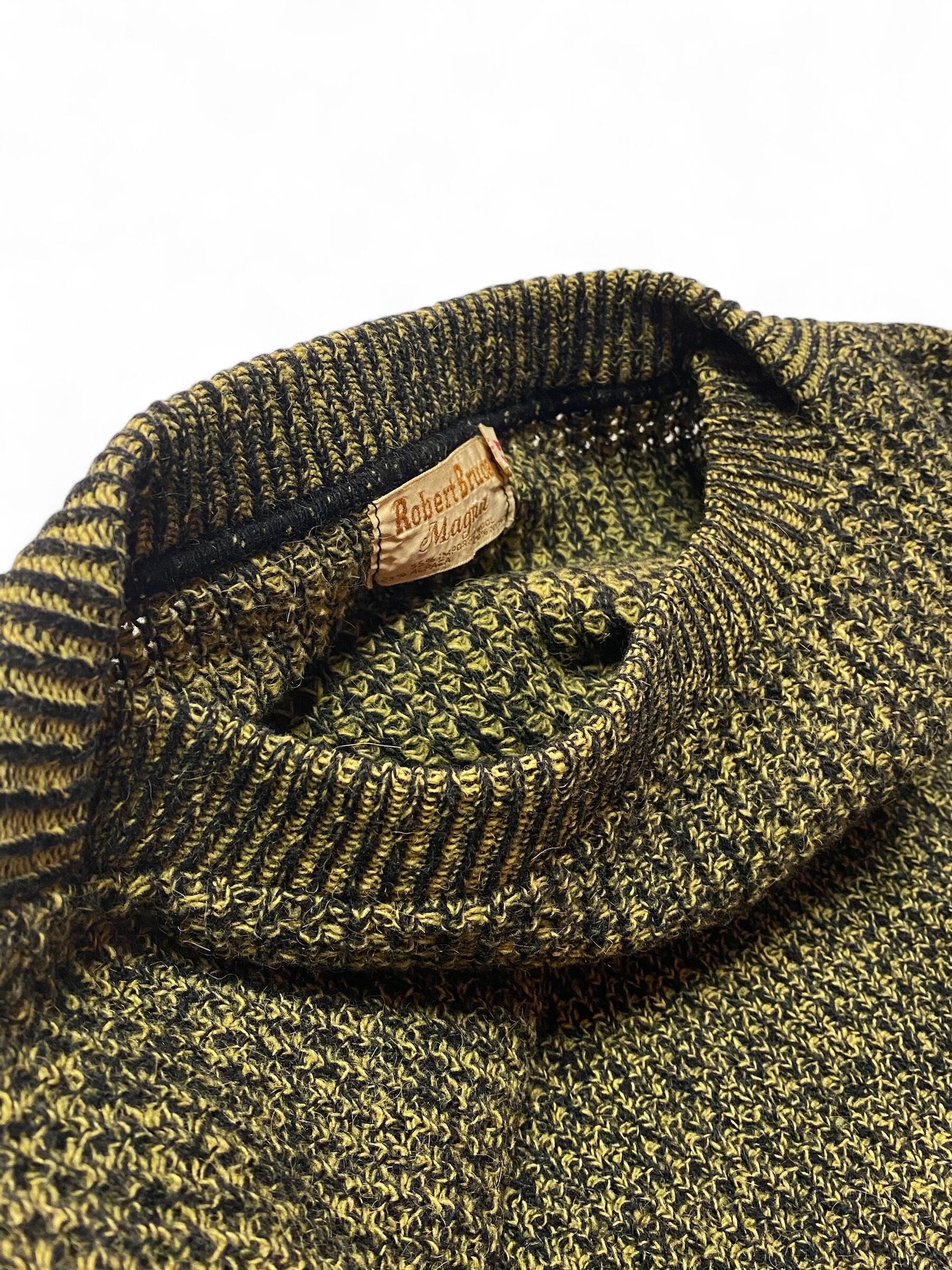 黒と黄色の配色がこの年代のニットでは珍しいです。またボートネックという点も珍しいと思います。